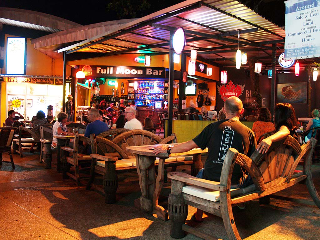 Full Moon Bar is a cozy and friendly bar on the main street in Ao Nang, Krabi, with a quiet and relaxed atmosphere. The bar is only 100 m. from the beach.